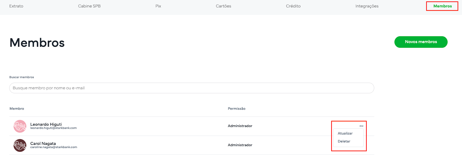 A member is a participant in your workspace. Member profiles include Administrator, Financial, and Compliance Operator, with different levels of access for each permission.