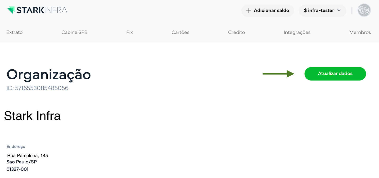 2. Na tela de Organização, clique no botão Atualizar dados: